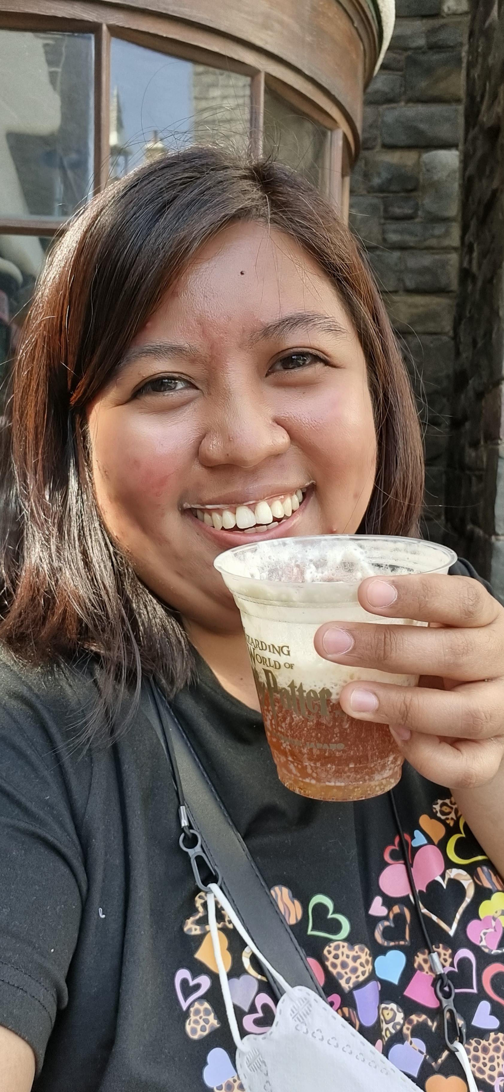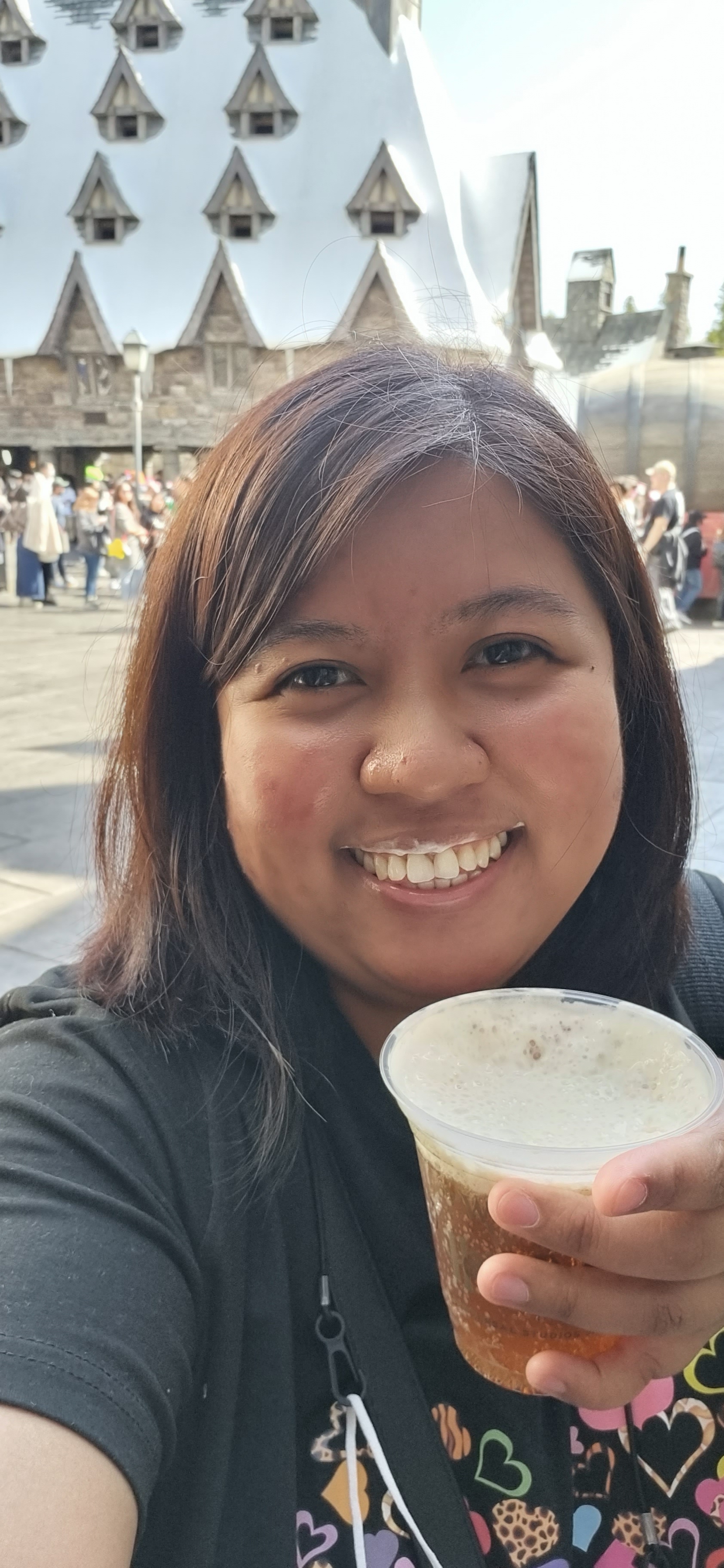 I started to queue for the long line of Butterbeer and it took me 15 minutes to get my first glass. It was refreshing knowing that I started to walk all morning. And note that there is a mandatory shot to take when drinking Butterbeer, you should have that bubbles on your mouth! 😀 ❤
