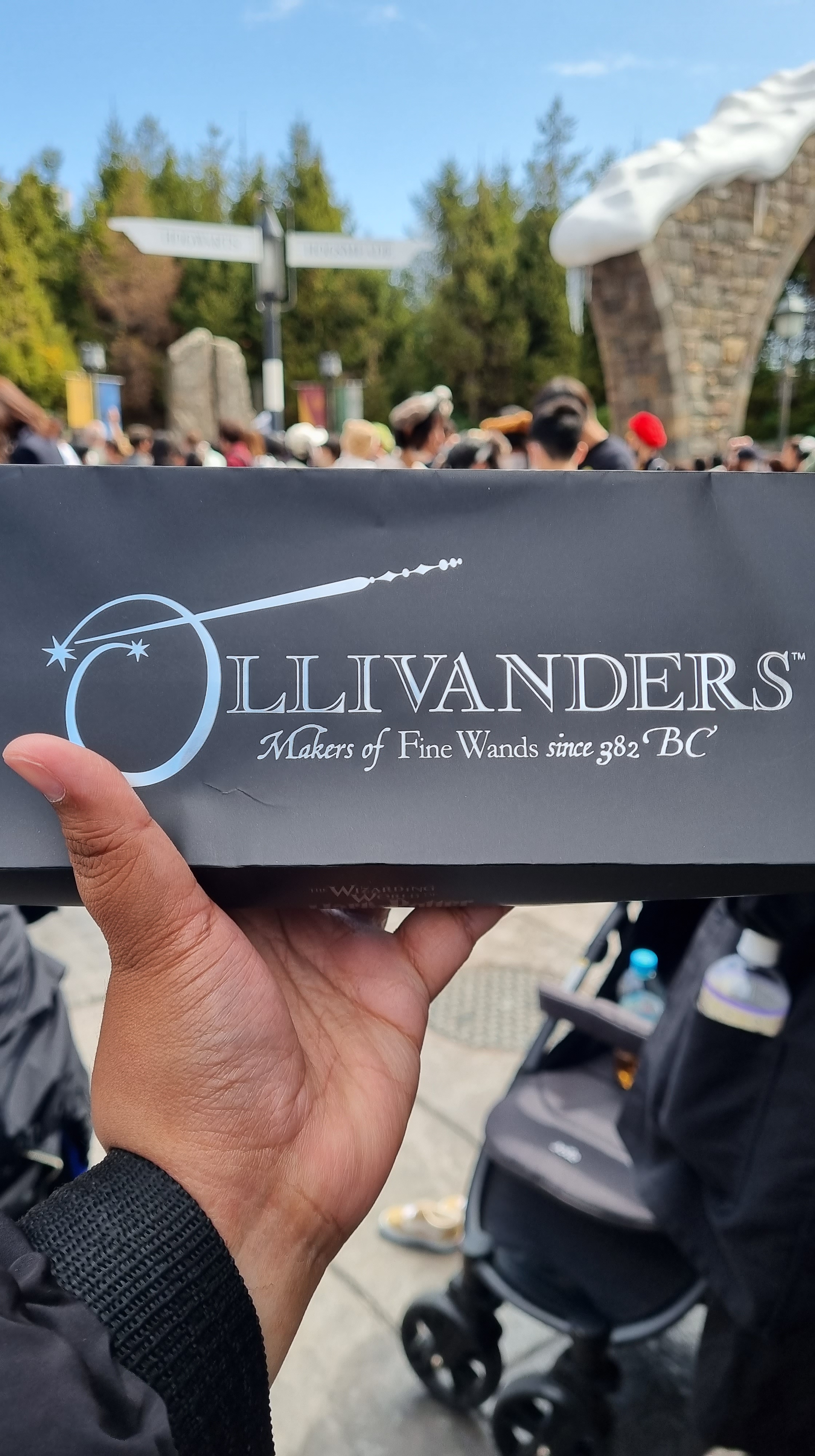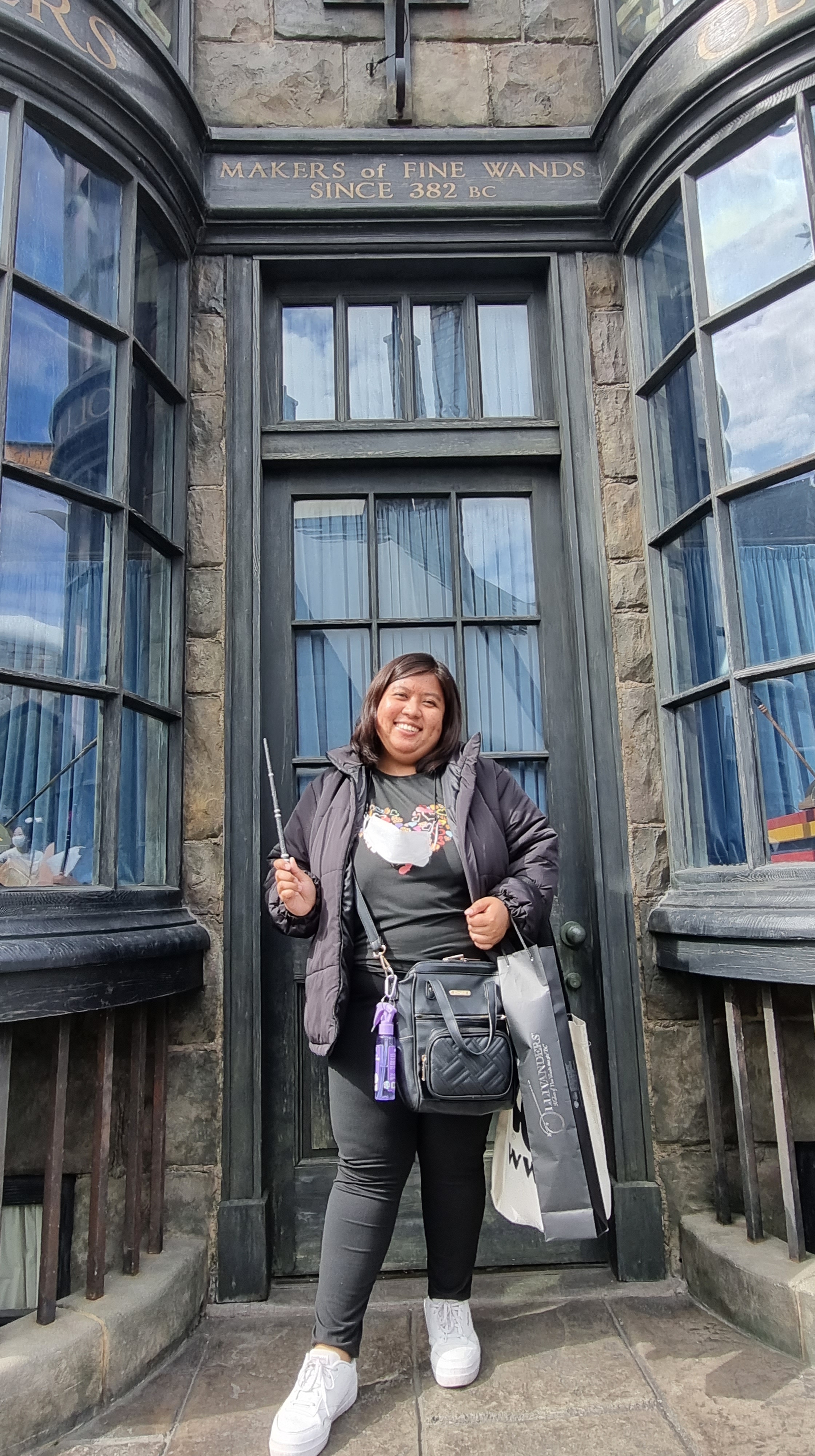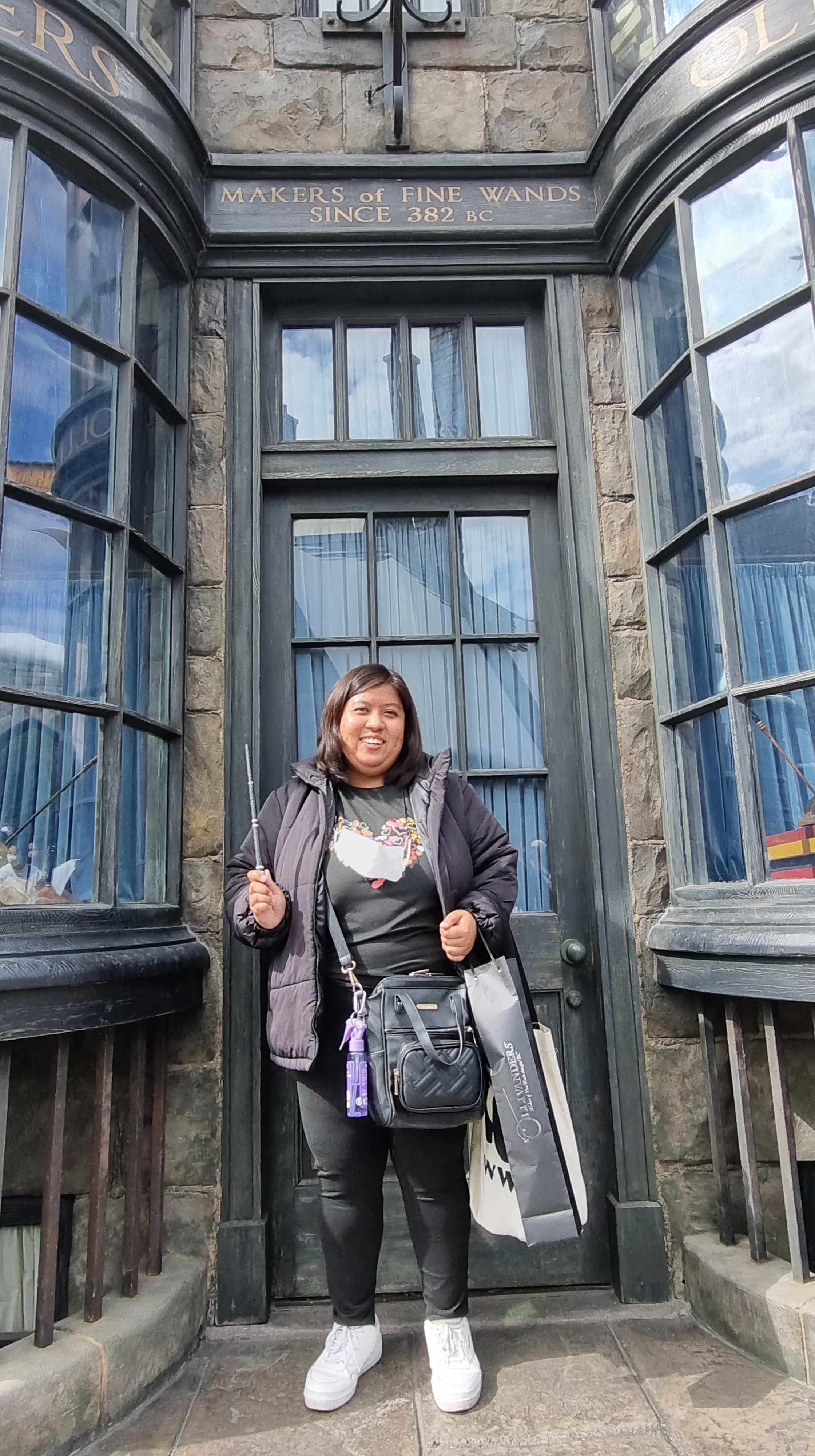 After drinking my first cup of Butterbeer, I walked around Hogsmeade and found myself buying my fist wand! ❤ Based on my Harry Potter app, my wand is Black Walnut with Dragon Heartstring, I was able to find it and with my eyes closed, I let the cashier swiped my credit card. 😀 Such a blithering idiot of me! 😀 But as Mr. Ollivander’s saying, “the wand chooses the wizard”, I will attest on that statement. 😀