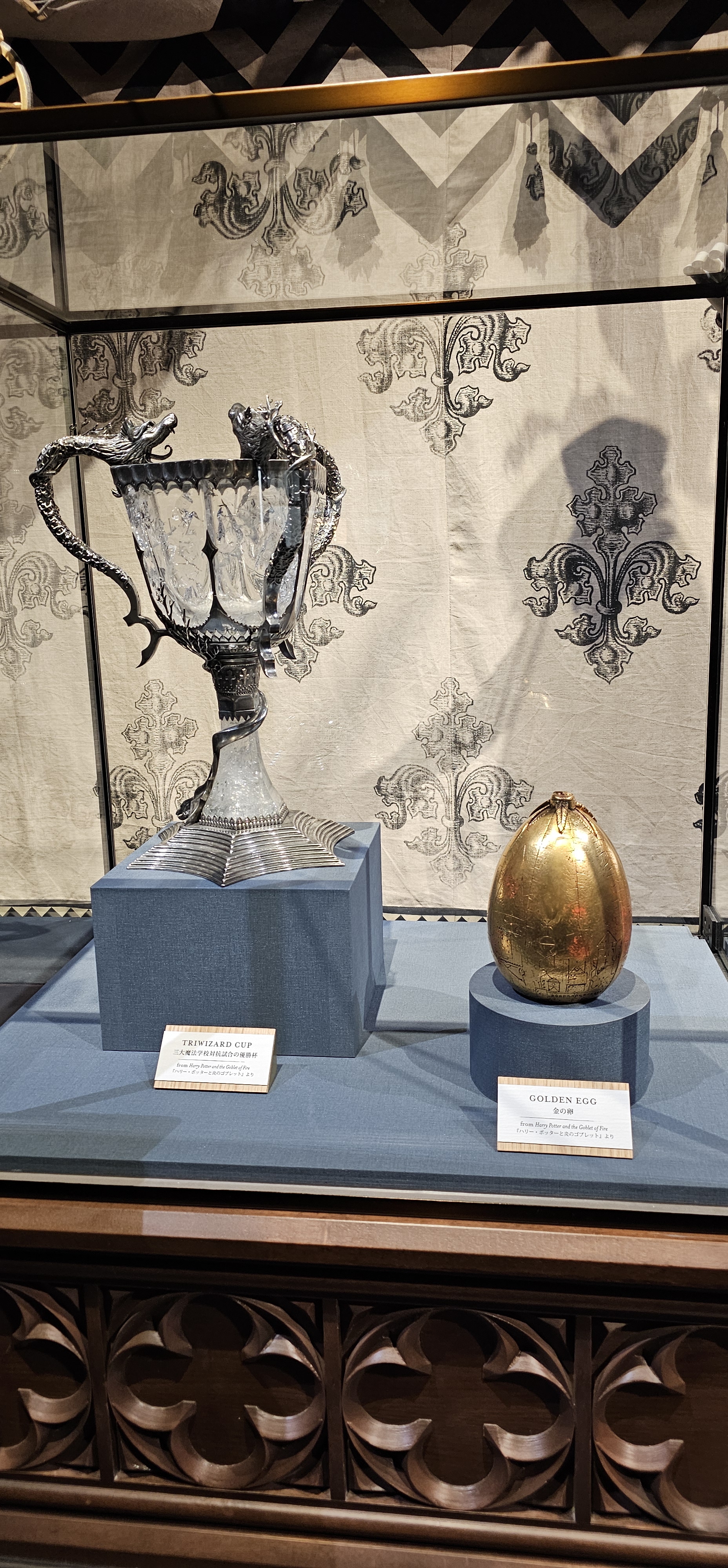 The Tri-Wizard Cup costumes and props were there too! The cup itself and the Golden Egg were sitting securely in one of the glass cabinets. Of course, so no one can steal it!