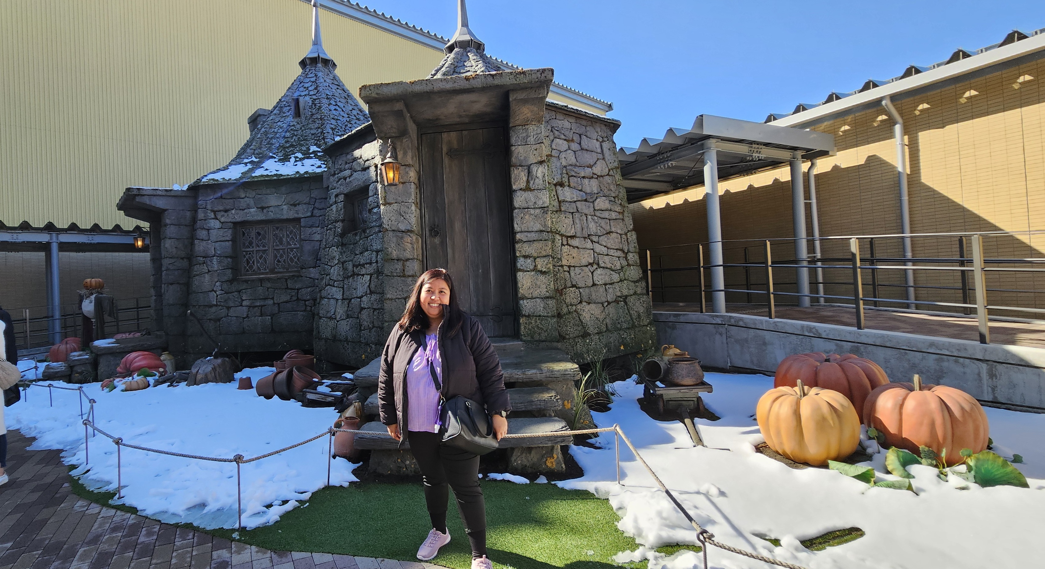 Hagrid’s Hut is outside the studio, perfect for the pumpkins to grow. As I was in Tokyo, it snowed the other night. Thus, the hut became more charming.