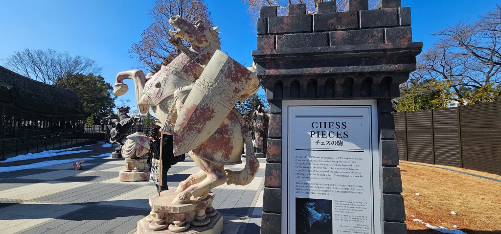 Still outside the studio are the Weasley’s car, the Knight Bus, Hogwarts bridge and the massive chessboard.