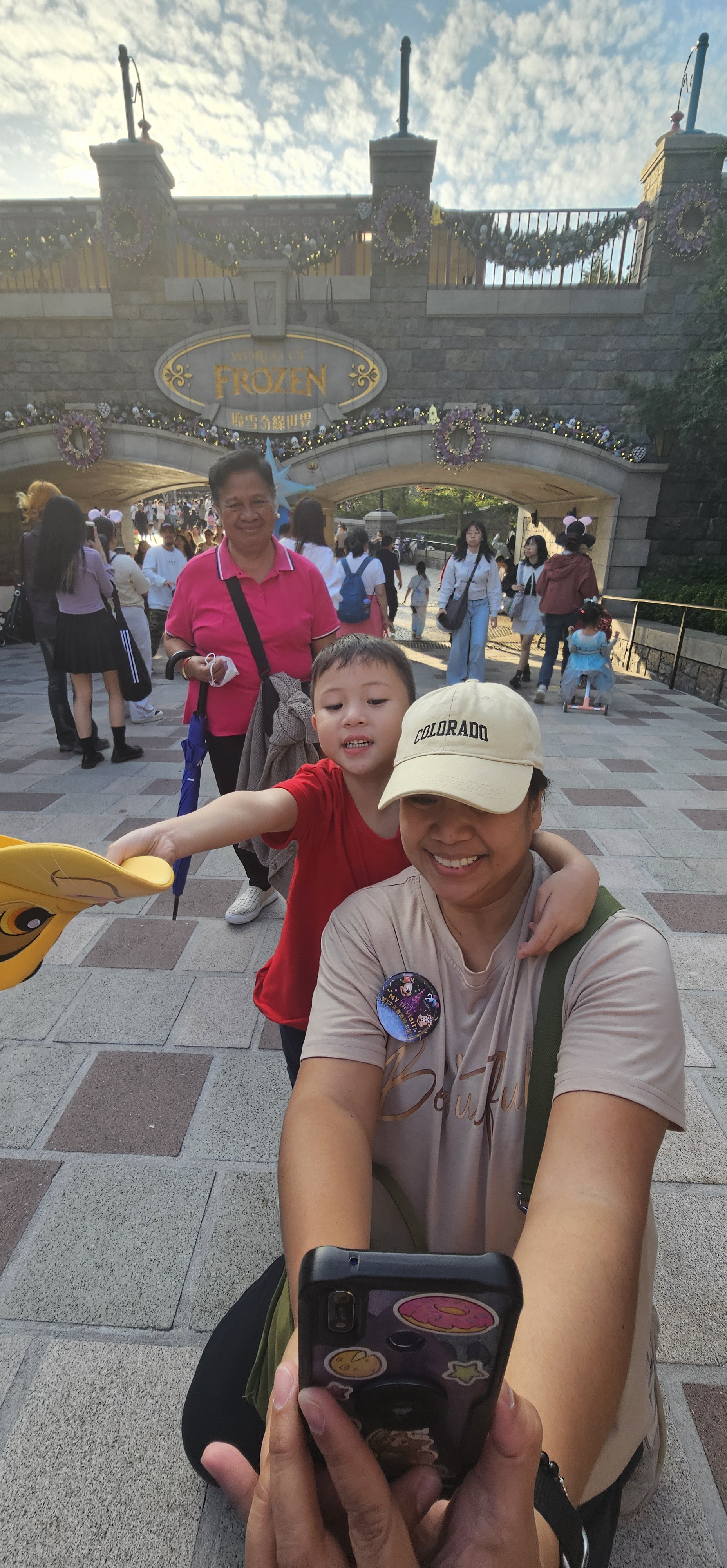 We arrived in HK DL at around 12PM. The queue was long. The crowd seemed like it was not moving from the entrance gate. After about 30 minutes, we reached the entrance gate and just showed our QR codes from Klook. 🥳